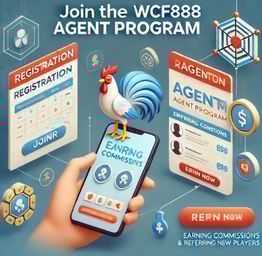 The WCF888 Agent Program allows you to earn money by referring new players to the platform. As an agent, you will be given a unique referral link to share with your friends, family, or social network. Whenever someone clicks on your link and signs up, you’ll receive a commission based on their activity—whether they’re placing bets or participating in live cockfights.